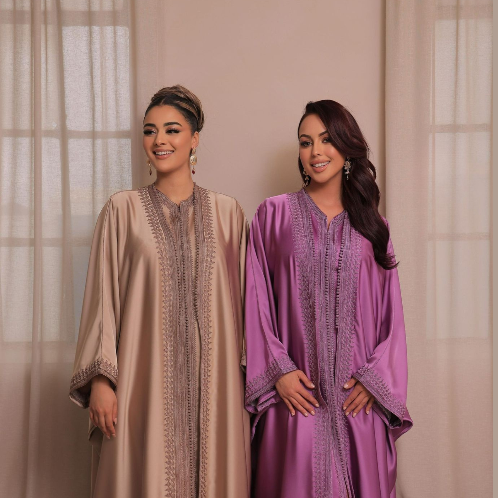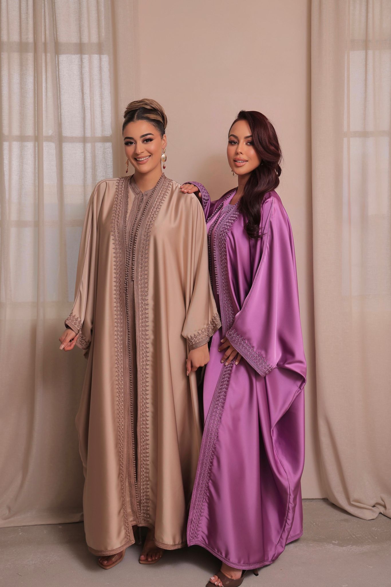 Onze Spring Collection kimono’s stralen zachtheid en elegantie uit. Links zie je de kleur Haneen, een warme en beige tint. Rechts wordt Pink Blush getoond, een frisse roze kleur die perfect past bij het voorjaar.